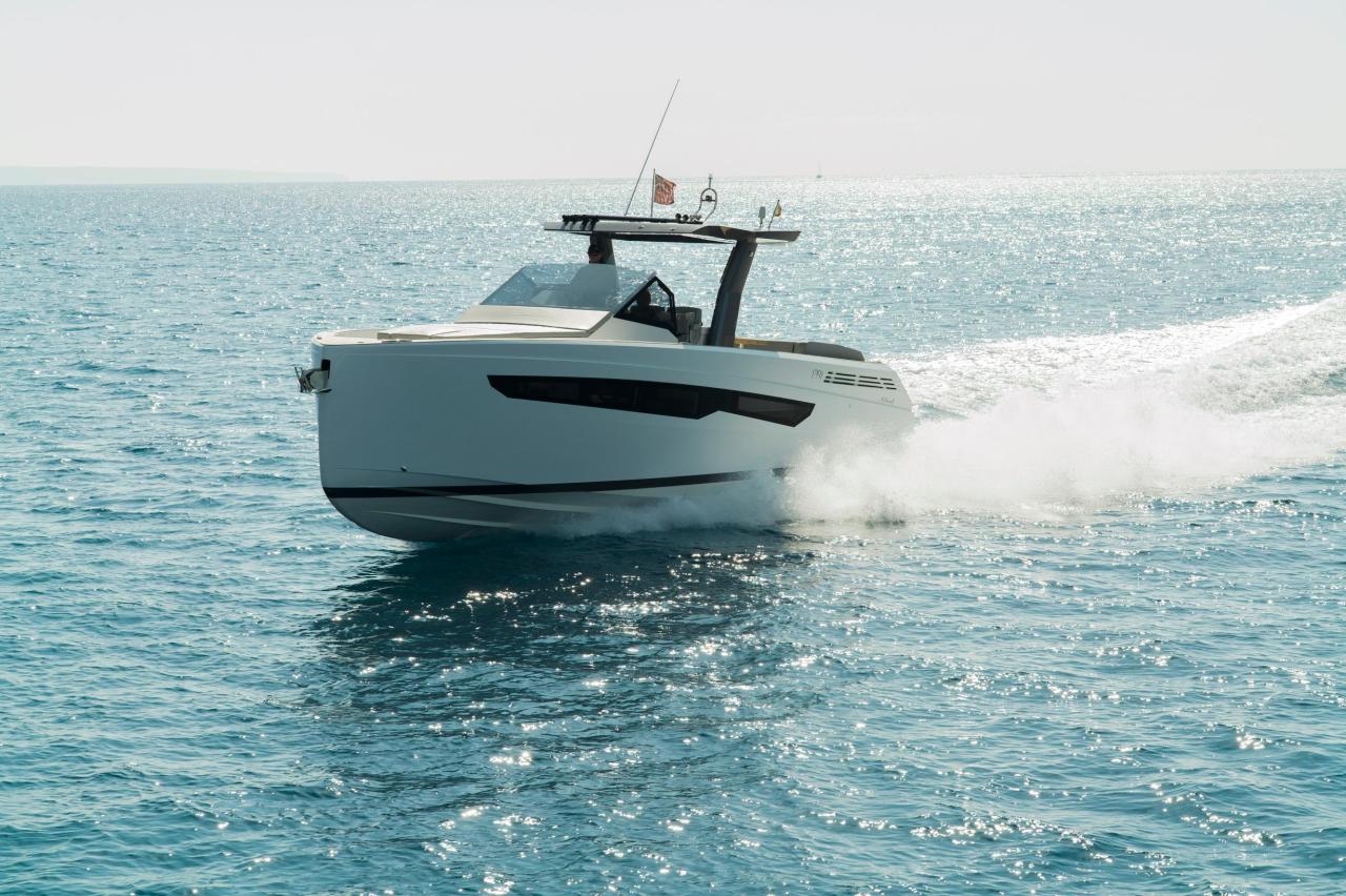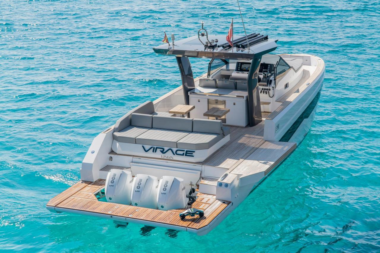Construit en 2023, VIRAGE OF LONDON (39’/12 m) est un Fiart 39 Seawalker qui marie à la perfection l’élégance italienne et des performances exaltantes. Propulsé par trois moteurs hors-bord Mercury Verado V8 de 300 ch, ce yacht offre des accélérations grisantes, une maniabilité fluide et une remarquable efficacité. Que ce soit pour une croisière confortable le long des côtes ou pour atteindre des vitesses allant jusqu’à 40 nœuds, le 39 SW est conçu pour impressionner à chaque instant.