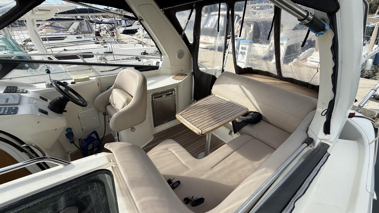 Ce bateau bénéficie d'un suivi moteur méticuleux et complet. Les échangeurs et les soufflets ont été remplacés, une révision complète a été effectuée en 2025, et le bateau reçoit annuellement son antifouling, l'entretien des embases et sa sortie d'eau. Un historique d'entretien complet est disponible comme gage de tranquillité et de valeur préservée.