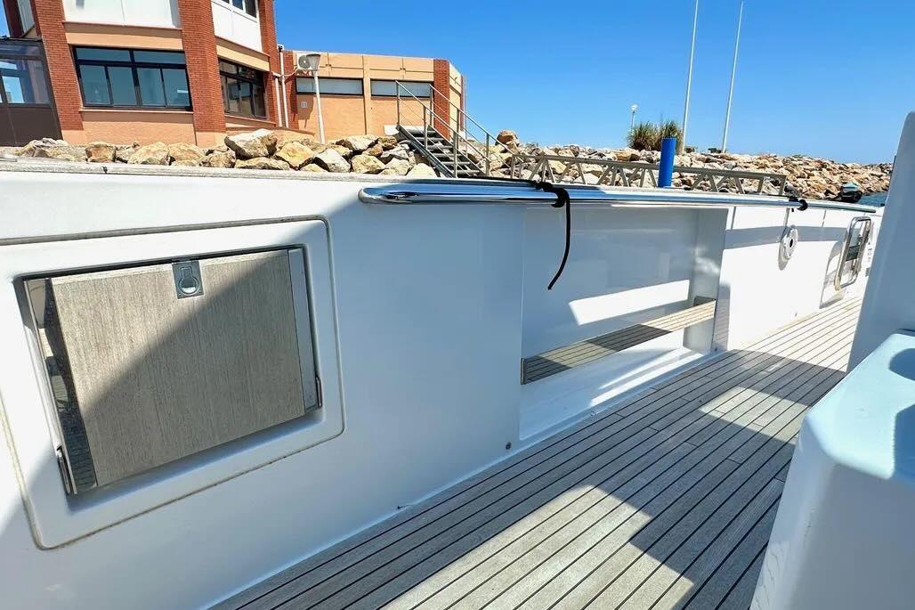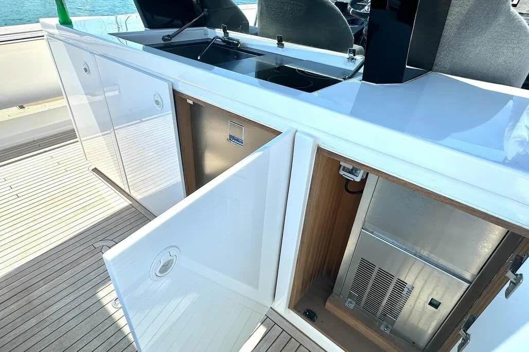 L’équipement est particulièrement complet : écran multifonction 16’’, compteur de chaîne, 3 réfrigérateurs, ice maker, onduleur, pack audio premium, caméra de recul, ainsi qu’un générateur Kohler 9 kW alimentant la climatisation, offrant un excellent niveau de confort et d’autonomie à bord.
