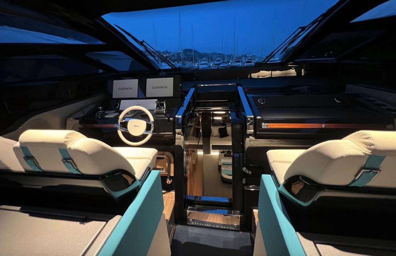 Cet exemplaire est particulièrement bien équipé, avec des options haut de gamme comprenant un stabilisateur gyroscopique Seakeeper, un système Internet Starlink, un dessalinisateur, une suite de navigation Garmin, un système audio haut de gamme et des finitions intérieures luxueuses. Avec ses vastes espaces de cockpit, son bimini rétractable et sa technologie embarquée de pointe, le Riva Diable est parfaitement adapté à la fois à la croisière rapide et aux réceptions élégantes.